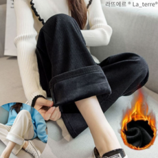 라뜨에르 여성 기모 코듀로이 와이드팬츠 일자 밴딩 골덴바지 키작녀 일상복 출근룩