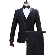 남성 정장 3종세트 [자켓+조끼+바지] 캐주얼 수트 결혼식 빅사이즈, 블랙, 4XL