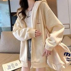 코우즈 데일리 1+1 무지 기모 오버핏 긴팔 후드 집업