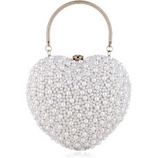 클러치 백 여성 이브닝 가방 구슬 결혼식 작은 지갑 어깨 진주 핸드백 하트 디자인 (Color White Size Small)