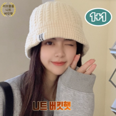 1+1 러브블룸 도톰 니트 벙거지 겨울모자 버킷햇