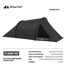 경량 1인 SHINETRIP 쉐이드 캠핑 텐트 터널 넓은 공간 다용도 옥스포드 천 견고한 내구성, 옵션1, 2) Black