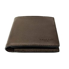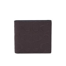 코치 Coach 남성용 컴팩트 가죽 반 지갑 블랙 마호가니 다크 서들