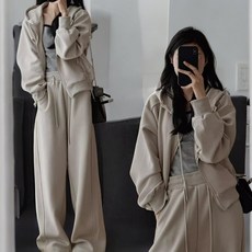 ANYOU 여성용 트레이닝세트 오버핏맨투맨+슬랙스 다리가 길어보이는 스판 밴드 팬츠