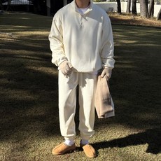 베어 기모 반집업 아노락 맨투맨 와이드팬츠 조거팬츠 세트