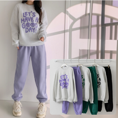 ANYOU 여성 데일리 캐주얼 밴딩 기모 레터링 트레이닝 세트 오버핏 도톰 츄리닝 세트