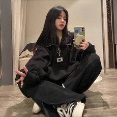 ANYOU트레이닝세트 상의+바지 여성용 맨투맨 오버핏맨투맨