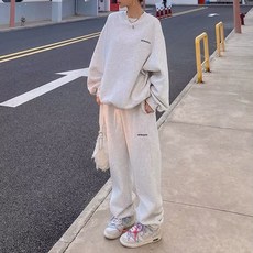 ANYOU 트레이닝 맨투맨 세트 여성 루즈핏 캐주얼 슬림핏 팬츠 투피스 트레이닝세트