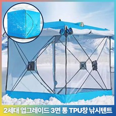 KTENBOX 사우나 텐트 낚시 큐브 3인 4인 3면 tpu창 빙어 낚시 원터치 누빔, B 블루 텐트