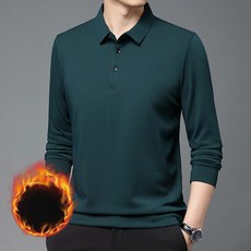 ANYOU 남성 긴팔 폴로 셔츠 기모 두꺼운 단색 카라 기본 셔츠