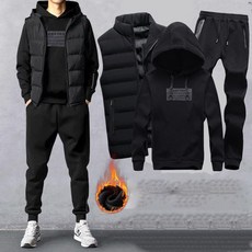 COSYEVNO 남자 트레이닝 스리피스 기모 두툼하고 따뜻한 후드 티셔츠+패딩조끼+조거팬츠 슈트