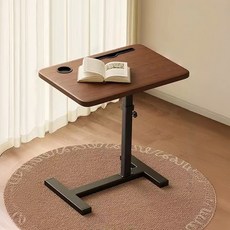 공간활용 튼튼한 높이조절 사이드 책상, 컵홀더형 월넛