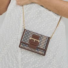 [정품] 닥스 카드지갑 DCHO4F135W2 [하운드투스][체인탈부착] 브라운 버클장식 가죽 슬림 얇은