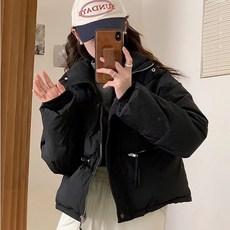 COSYEVNO 여자 패딩 겨울 허리를 조인 두툼하다 후드 미디 빵 점퍼