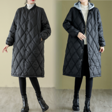 탈착가능 후드 누빔퀼팅 롱 경량패딩 여성 하프길이 패딩점퍼 간절기 잠바