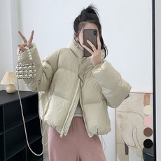 ANYOU 여성 고급감 오리털패딩 오버핏 빅사이즈 스탠드칼라 숏패딩
