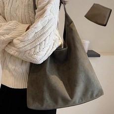 NAERSI 여성스러운 가죽 스웨이드 숄더백 + 화장품 파우치 여성 가벼운 빅사이즈 무지 에코백 5color