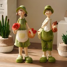 레드체리 정원 인형 꾸미기 농부 조각상 커플 남겨 인테리어 소품, 커플 농부 인형