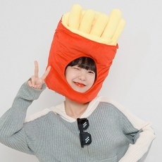 말랑마쥬 인생네컷 동물 캐릭터 모자 할로윈 파티 소품, 1개, 감자튀김