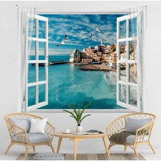 해룸 대형 패브릭 포스터 두꺼비집 가리개 페브릭 태피스트리 가림천 아트 행잉 초대형, 19.산토리니