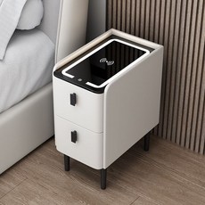 금고 협탁 침실 침대 스마트 스피커 무선충전 블루투스 틈새 좁은 테이블 조명 서랍장 미니, 5. 화이트+무선충전