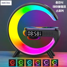 고속 무선충전 무드등 감성 스마트 led 시계조명 블루투스스피커, 블랙