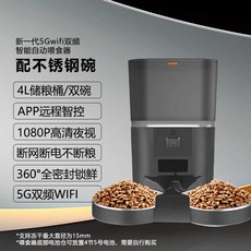 자동간식기 원격조절 스마트펫 급식기 카메라 지원 자동급여, 1개, 5G 4L 이중 그릇