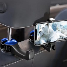 장착이 설치가 쉬운 편한 차량용 헤드레스트 후크 겸 뒷좌석 차량 핸드폰거치대 스마트홈-샵, 블랙