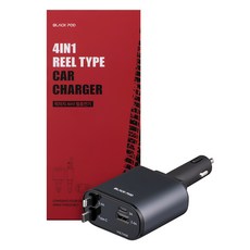 모잇 릴타입 차량용 고속충전기 동시 4대 충전 (아이폰 갤럭시 케이블 내장), CPLB-4LCW, 블랙