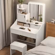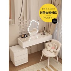 데이오 원목 미니 화장대 LED 조명 거울 서랍장 수납 틈새 엔틱 슬림 안방, 화이트