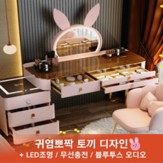 ModernoCasa 핑크래빗 스마트 화장대 세트 LED 조명 거울 수납장 원목, 핑크 100 + 의자