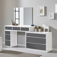 데스텀 입식 수납 거울 화장대, 화이트그레이
