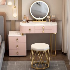 YAPOGI 력셔리 스마트 화장대 무선 충전 가능 북유럽 침실 심플 다기능 화장대세트, 화이트데스크톱+찬장+회전거울+격자의자, 핑크