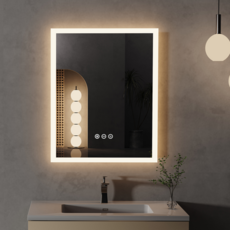 LUVODI 소형 사각형 LED 스마트터치 김서린방지 간접조명 욕실거울 400x500 화장대 인테리어, 3색