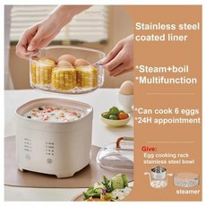 계란삶는기계 계란찜기 키친아트 다기능 전기 스티머 자동 전원 차단 스마트 에그 쿠커 가정용 요리 냄비 24 시간 약속 아침 식사 기계 220V, 1개, 4) With steamer - EU