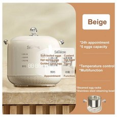 스마트 에그 쿠커 전기 요리 냄비 홈 약속 다기능 아침 식사 기계 자동 스티머 주방 가전 300W, 1) 베이지 - EU