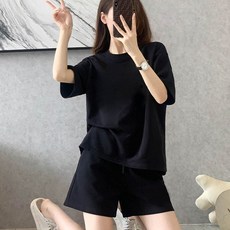 턴키 빅사이즈 트레이닝 스판 투라인 반팔 티셔츠 + 밴딩 반바지 세트 ST-1155