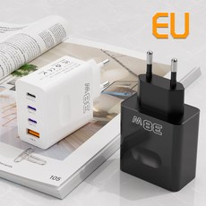 3TYPE-C+1USB 휴대폰 38W 충전기 유럽 미국 영국 유럽 미국 영국 여행용 어댑터 3PD 퀵 충전헤드, 1개, 블랙38W