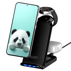 지파워 3in1 고속 무선 충전기 삼성 갤럭시 핸드폰 휴대폰 워치 버즈 고속 무선 충전패드, 블랙 1개, 1개