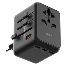 SKY 필 2500W급 GaN 65W 노트북용 초고속 5포트 해외여행용 멀티플러그 충전어댑터 T65PD, 플래닛 블랙, 1개