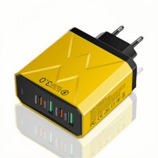 100W 4포트 멀티 USB 충전기 어댑터 C타입 초고속 충전기, 1개, 노란색