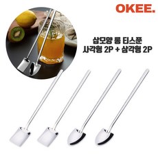 OK 삽모양 롱 티스푼 홈카페 스푼 삽 디저트 숟가락, 1. 사각형 2p + 삼각형 2p, 1세트
