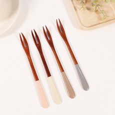 휴홈 천연 옻칠 파스텔 티포크 티스푼 롱티스푼 4개 세트, 코코아4개
