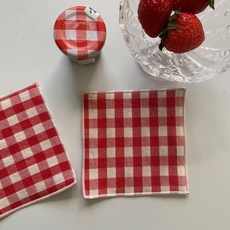 컵받침 패브릭 코스터 체크 시리즈 2p, 레드, 2개