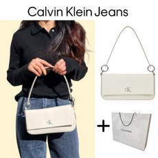 [백화점판] CK 캘빈클라인 가방 크로스백 숄더백 여성 미니 모노그램 플랩 아이보리 + 쇼핑백