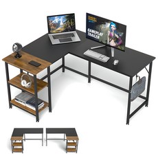 월로덴VORDERN L형 코너형 컴퓨터 책상 선반책상, 블랙