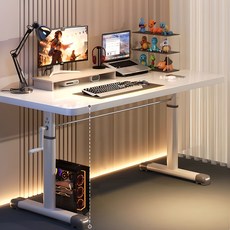돌아라 높이조절 컴퓨터책상 수동 모션데스크 리프트 책상, 흰색