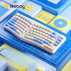 LEOBOG A75 Alice 인체공학 기계식 키보드 83키 무선 객제화 TOP구조 3모드, 2. 바비 샤프트, 2. 화이트 블루
