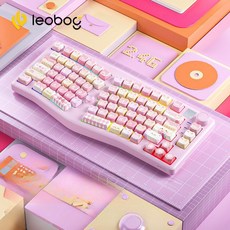 LEOBOG A75 Alice 인체공학 기계식 키보드 83키 무선 객제화 TOP구조 3모드, 2. 바비 샤프트, 4. 판타지 핑크