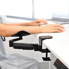 이 팔걸이는 주로 컴퓨터 작업을 하는 사람들이 사용하며, 손목, 팔, 어깨 등의 부위에 가해지는 스트레스를 줄여줍니다.